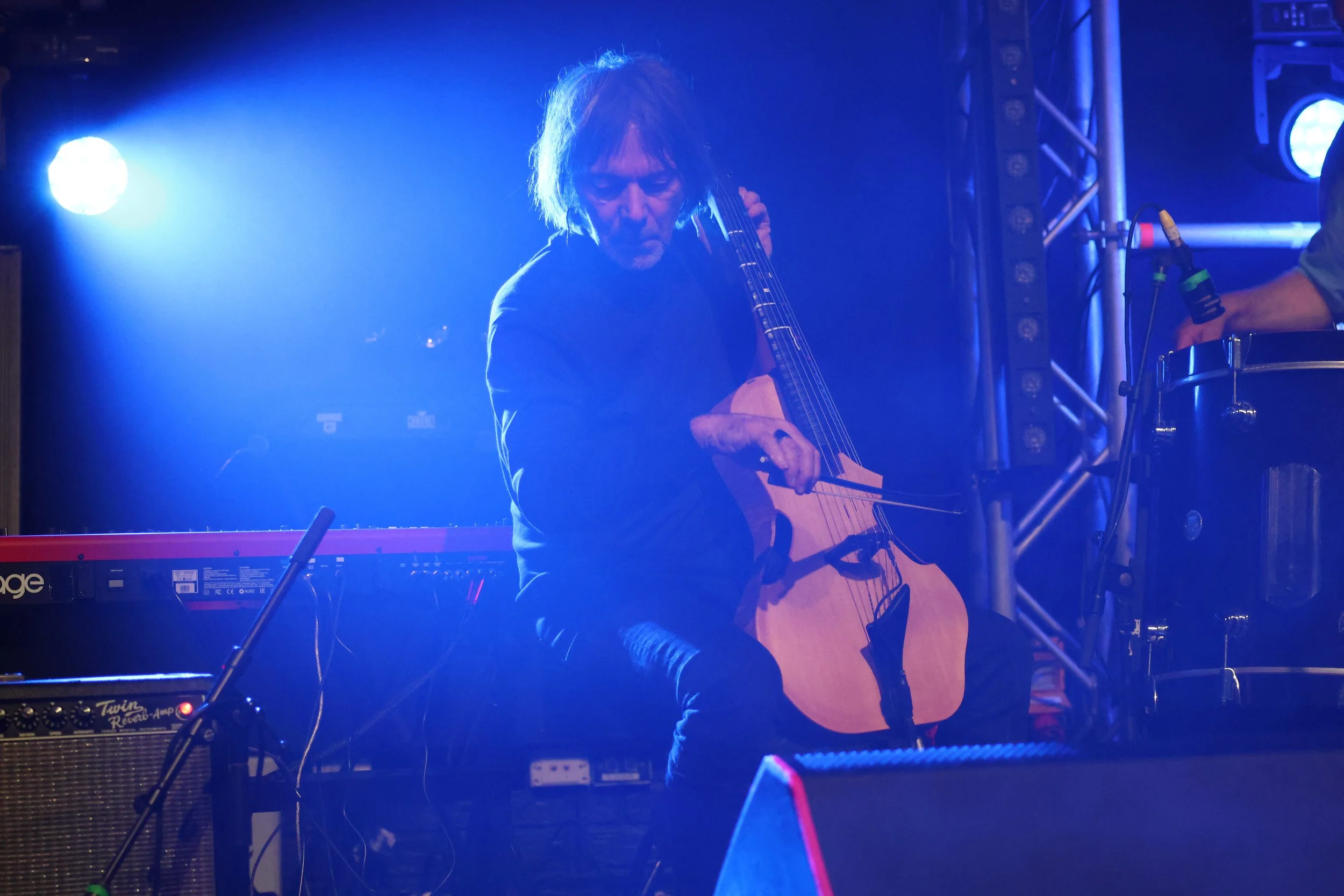 Mick Harvey was then in charge of the microphone, and he brought the dark back with the sombre dirge of ‘The Bed’, ‘I’m Set Free’ and ‘Street Hassle’. His straight reading and singing of Lou Reed’s lyrics was amazing. He became the conduit for the spirit of the songs, and for those three songs that I did not know well, he let the poetry out and the light into the soundscape. It was impressive, as getting that emotion across is difficult.