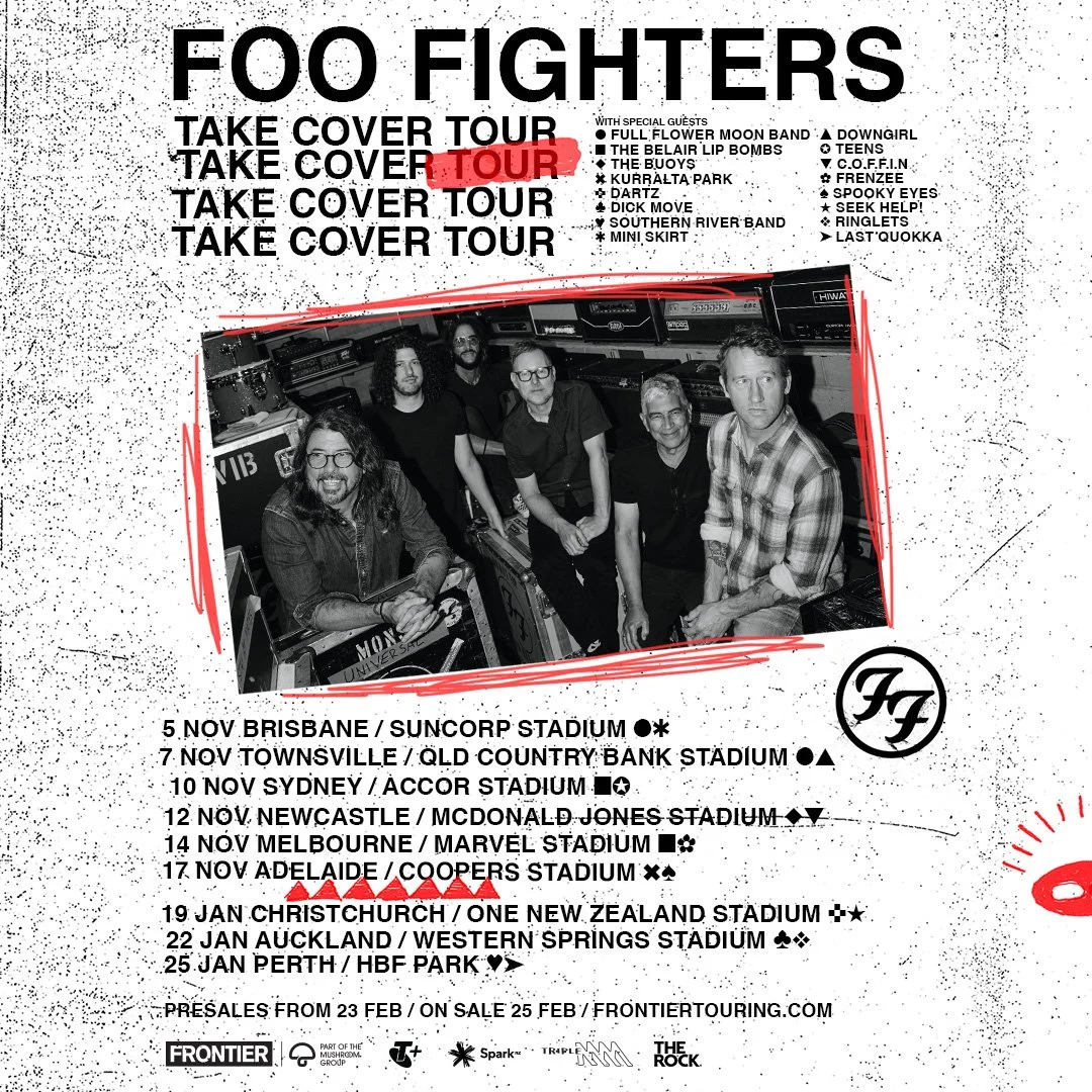 Frontier Touring is thrilled to announce that one of the biggest and most beloved rock bands of all time – Rock and Roll Hall of Fame Inductees Foo Fighters – will make their hugely anticipated return to Australia and New Zealand next summer. Celebrating their long-standing love of both countries, this return marks another major chapter in the band’s ongoing global touring legacy, as they bring their unparalleled live show to stadiums in Brisbane, Townsville, Sydney, Newcastle, Melbourne and Adelaide this November 2026, followed by Christchurch, Auckland and Perth in January 2027.