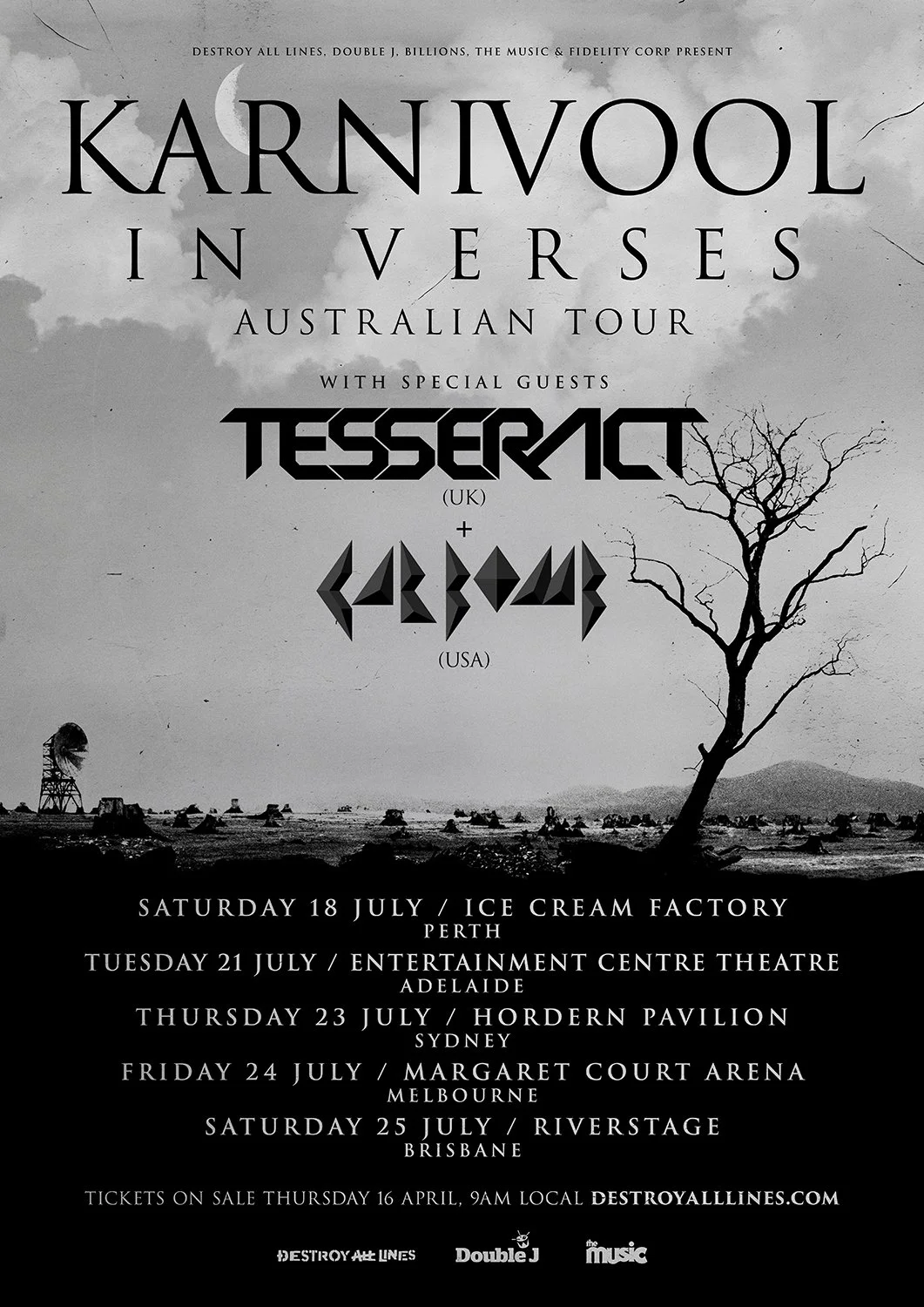 Tickets are on sale Wednesday 15 April at 9am local time via destroyalllines.com