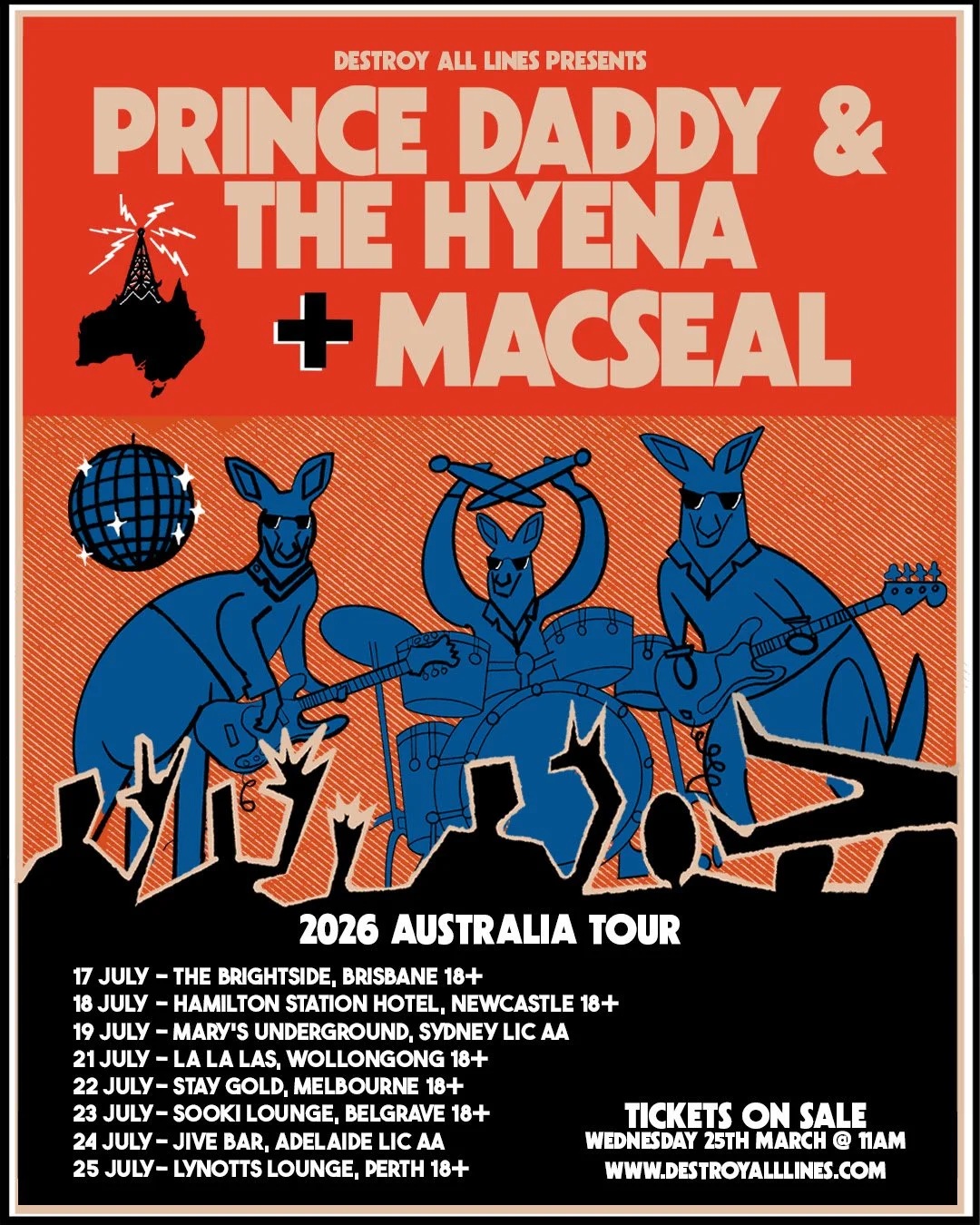 New York punk and indie rock acts Prince Daddy & the Hyena and Macseal will make their Australian debut this July, joining forces for an eight-date co-headlining tour. Tickets go on sale Wednesday 25 March at 11am local time via Destroy All Lines.