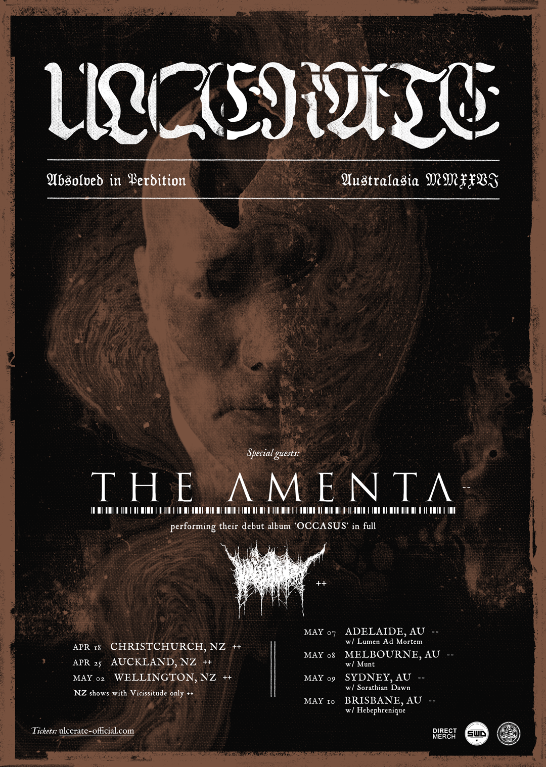 Joining him in the band is Matt Wilcock (AKERCOCKE, THE BERZERKER, WEREWOLVES, ABRAMELIN) on second guitar. In 2026, THE AMENTA will bring the crushing filth of “Occasus” back once more to Australian stages, playing the album in full in support of the devastating ULCERATE.