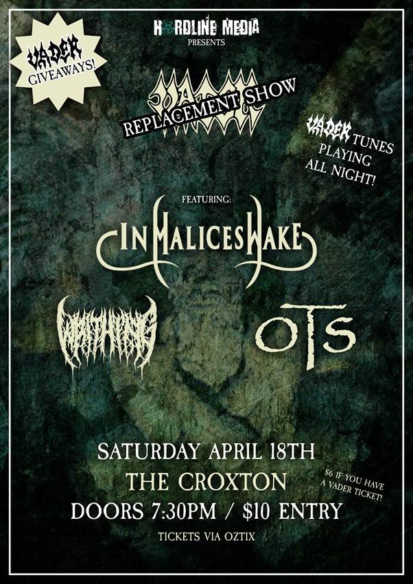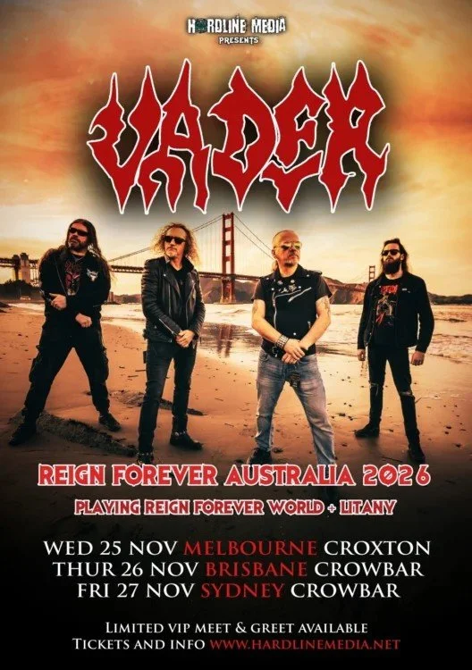 STATEMENT FROM VADER: "Dear fans of Australia, Vader have had to make the difficult decision to reschedule our Australian Tour dates due to the conflict in the Middle East. We cannot risk the flights being cancelled and everyone losing out. We have worked out with our Australian promoter Hardline Media, on some new dates in late November. Please hold onto your tickets; your current ticket/s transfer directly to the rescheduled dates. We will see you in November, we cannot wait to return."